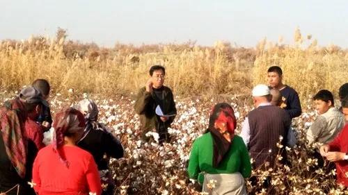 出门在外不容易,这一批务工人员离开家已经四十多天了,千里之外、沙漠边缘、思乡心切,见着驻村两年、日日走访、家家去过的张勇队长显得分外熟悉、格外亲切。加上21村在叶城县恰其库木管理区的20余名拾棉花村民,此次工作队一行总共看望慰问了4个外出务工小组80余人,送去了价值4000元的羊肉、矿泉水和馕等慰问品,送去了党和政府的关心和问候。为了不影响大家完成生产任务,工作队一行每到一个务工小组都会先直接来到拾棉花的务工现场,且会同大家一起体验拾棉花劳动,张勇队长利用大家间歇休息、相对集中的机会宣讲党的十九大会议精神、宣讲外出务工管理规定、宣讲最新惠民政策。张勇队长用通俗易懂的语言向务工人员传达解读着十九大精神,同时地穿插介绍一些十九大以来驻村工作队、下基层干部以及村“两委”为村民们办的一些实事好事。此时,宣讲交流产生了共鸣,贫困户吐尔逊·吾斯曼说:“我跟家里人打电话都听说了,工作队帮助我们销售核桃,让我们大家很感动。